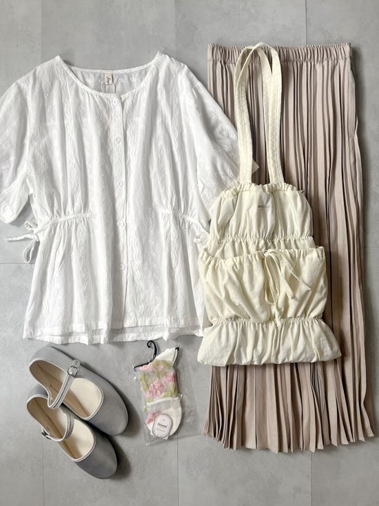 【預購】日系刺繡綁帶短袖襯衫|森林系寬鬆純棉上衣2色-白