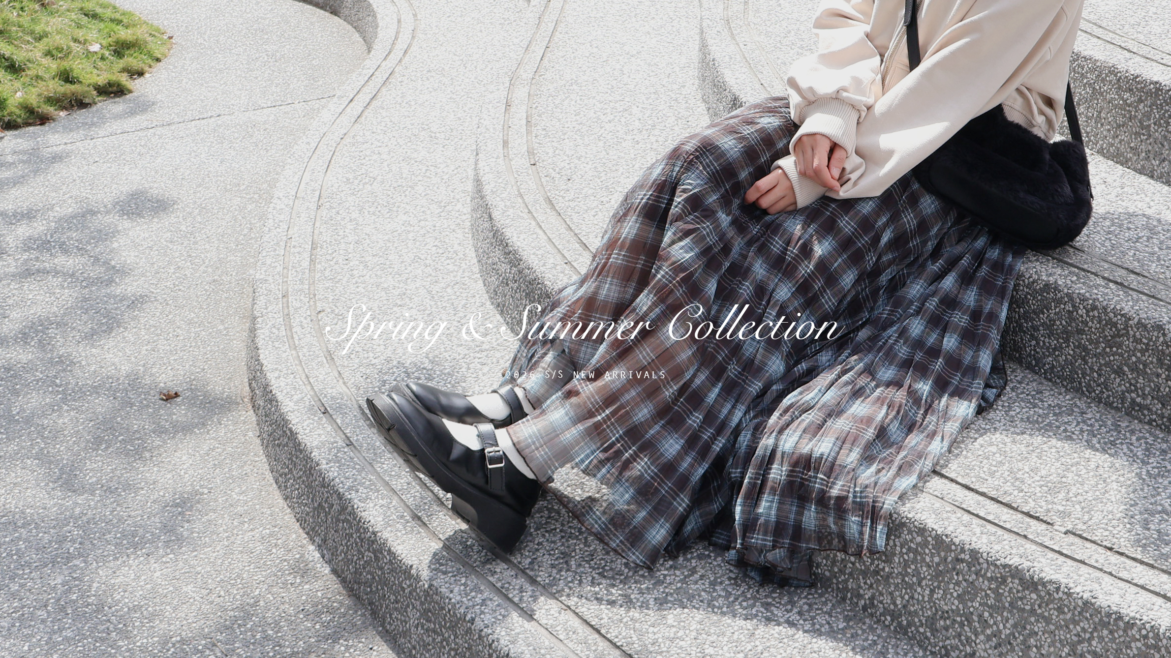 春夏日系鬆緊腰空氣感薄款輕盈格子紗裙長裙2色-咖