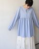 早秋日系森林系小立領背後扣刺繡領袖棉質長袖薄上衣2色-淺灰藍