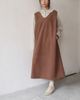 秋冬日系森林系寬鬆V領燈芯絨內裡刷毛背心吊帶洋裝2色-咖