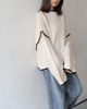 秋冬日系拼色寬鬆燈籠袖針織米色毛衣上衣