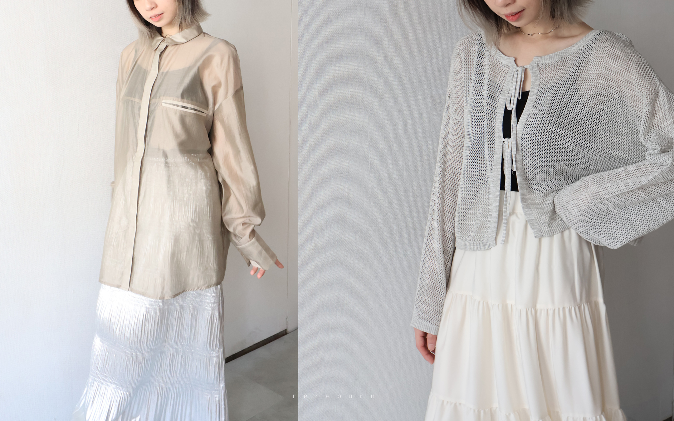 【預購】日系日本選品雙面穿綁帶透膚長袖襯衫4色-白可可粉黑