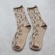 秋冬日本選品日系大人感花朵織紋羊毛保暖襪子4色-米棕粉灰