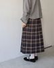 早秋日系森林系鬆緊腰百摺格子長裙3色-B咖啡