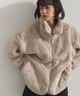 【預購】日系秋冬日本選品兔毛風格環保毛絨立領拉鍊外套大衣5色-米白摩卡米卡咖啡炭灰