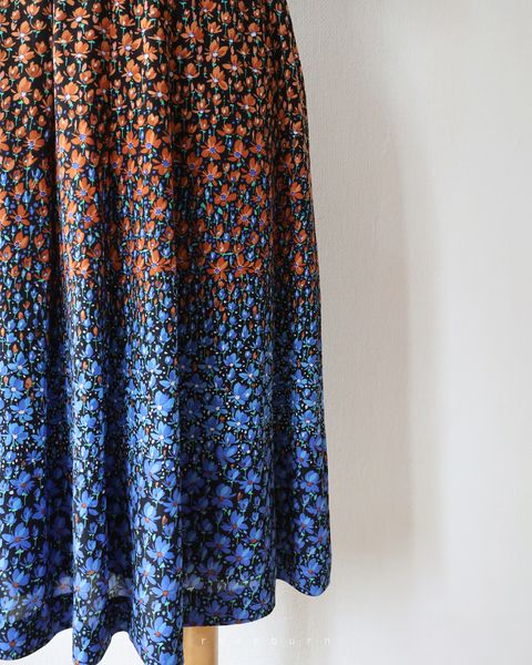日本製日系昭和風復古花朵黑紫色純棉短袖古著洋裝-D766