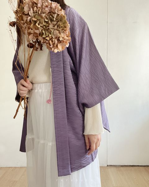 日本製和風印花薄款紫色古著羽織和服外套-H428