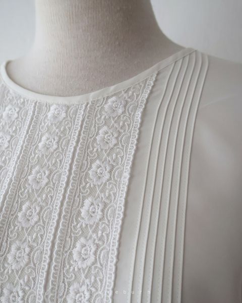 復古剪裁蕾絲拼接歐美版型長袖白色古著襯衫-T111
