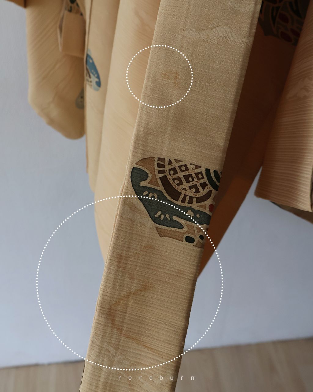 日本製和風印花黃色古著羽織和服外套-H260-瑕疵特