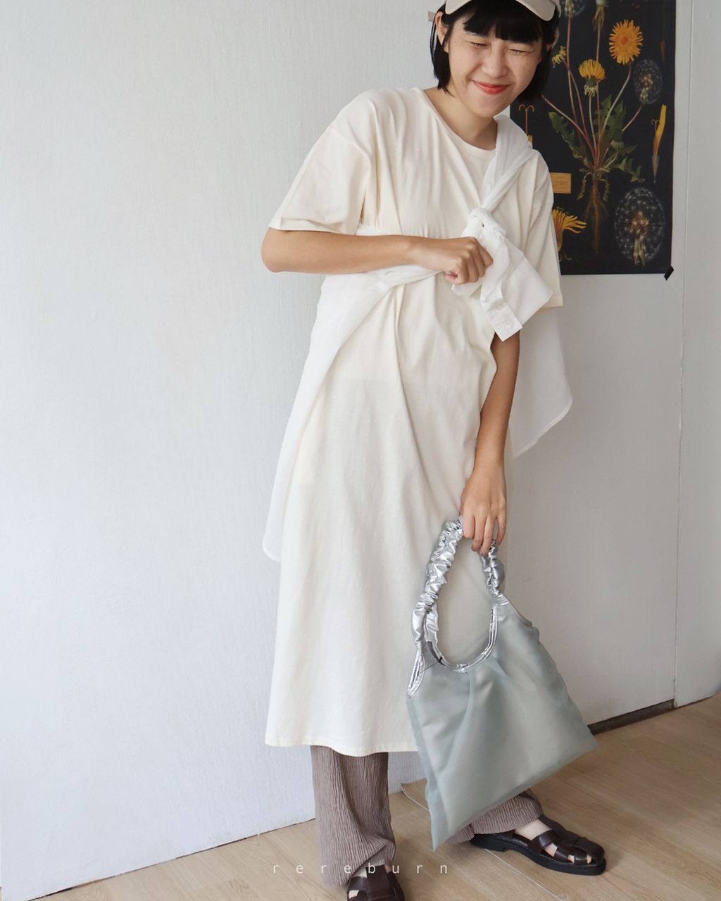 【RE061415】春夏日本選品日系簡約百搭無印風寬鬆短袖長版洋裝4色-米白